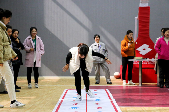 在举办完插花活动之后,在公司员工活动中心举办了趣味运动会活动。在“手脚并用”游戏中,需要参赛选手根据赛道的提示,依次将手掌或脚掌放入指定的位置并完成比赛。随着比赛的进行选手们完成的成绩越来越快,在经过预赛、决赛之后,商管部曲莎莎以10秒86的成绩获得了冠军,曹璐璐、李朋辛获得亚军、季军。在“夹乒乓球赛”的游戏中,需要选手将20米外的乒乓球通过筷子的方式夹到脸盆中,非常考验选手的耐心和速度。经过激烈的比赛盈科物业王淑范以18秒17的成绩获得冠军,原桂燕、田晶分别获得亚军、季军。