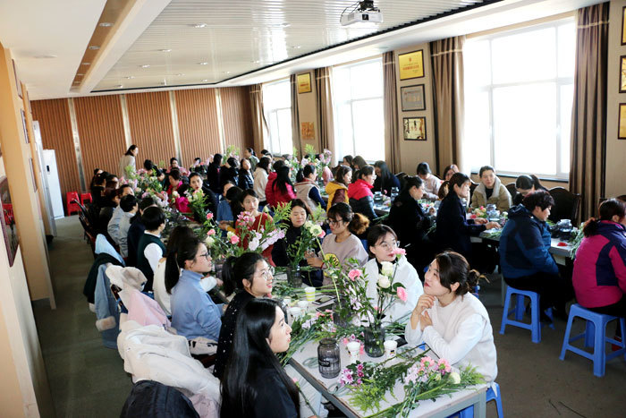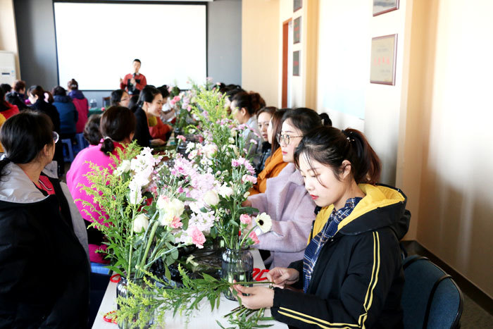 插花作为一门传统艺术,将人的思想情感和文化艺术融入自然之美,成为陶冶情操,修身养性,提高品位的生活方式。上午八点,一堂生动的生活花艺课在红旗置业四楼会议室展开,本次活动包括插花讲座和插花体验两部分。花艺老师从中华花艺的历史渊源、特色、插花类型及实操过程,细致地向大家讲解了插花的基本知识和技巧,并将不同类型的鲜花生动地展现在每个女职工面前。女职工们对插花表现出了极大的兴趣,在老师的指导下,大家边看边学,修枝剪叶,亲自动手完成了一件件精美的插花作品,看着眼前一盆盆色彩缤纷、形态多姿的艺术品,每个人的脸上都绽开了美丽的笑容,纷纷和自己的花艺作品合影留念。